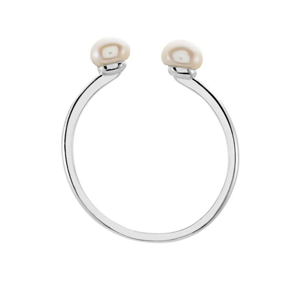 Bague Ajustable Argent Blanc 925/1000 Perles De Culture 4-4.5 Mm