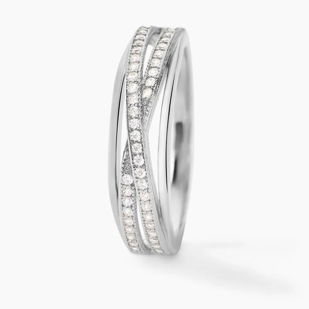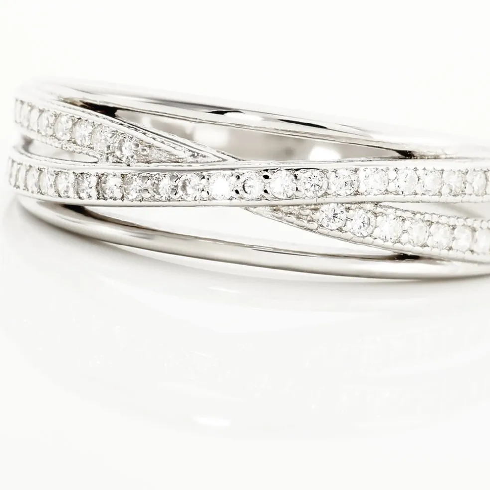 Bague Argent Blanc 925/1000 Oxydes De Zirconium Croise