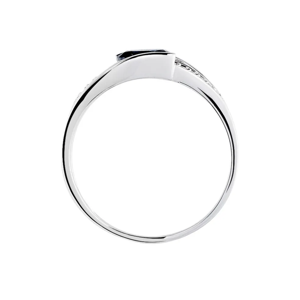 Bague Or Blanc 375/1000 Forme Couteau Saphir Oval Central Accompagne Diamants