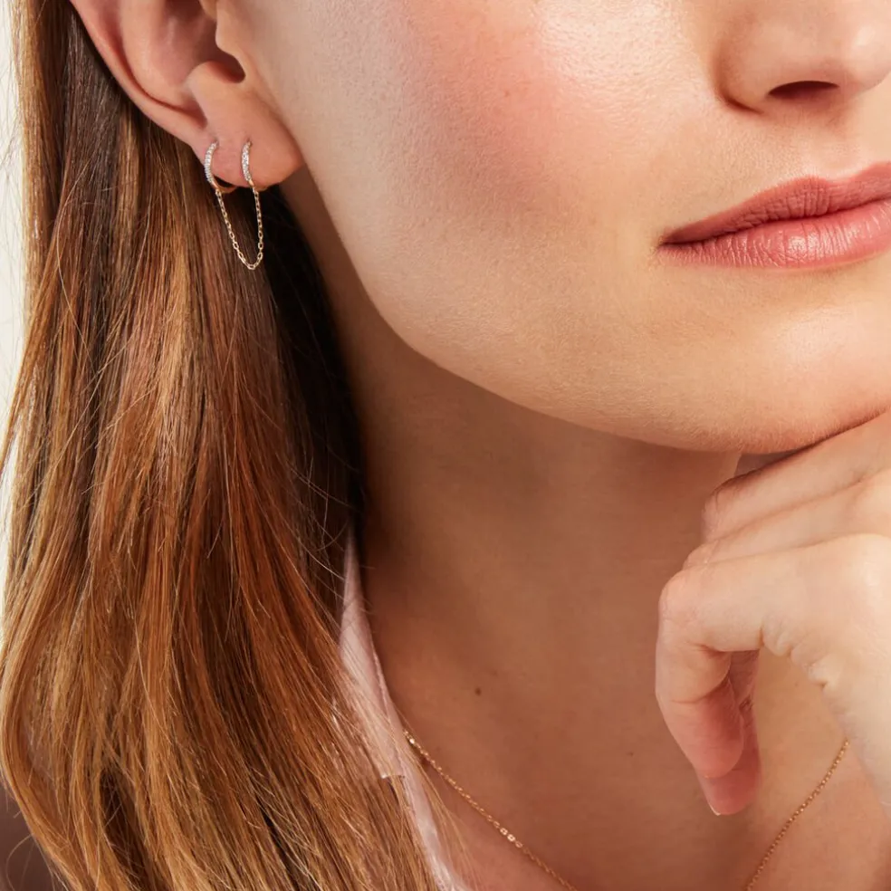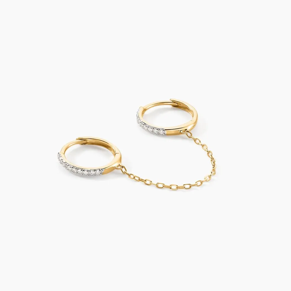 Bijou D’oreille Unitaire 375/1000 Creoles Chaines Diamants 0.04cts Micro Serti Diametre 8mm