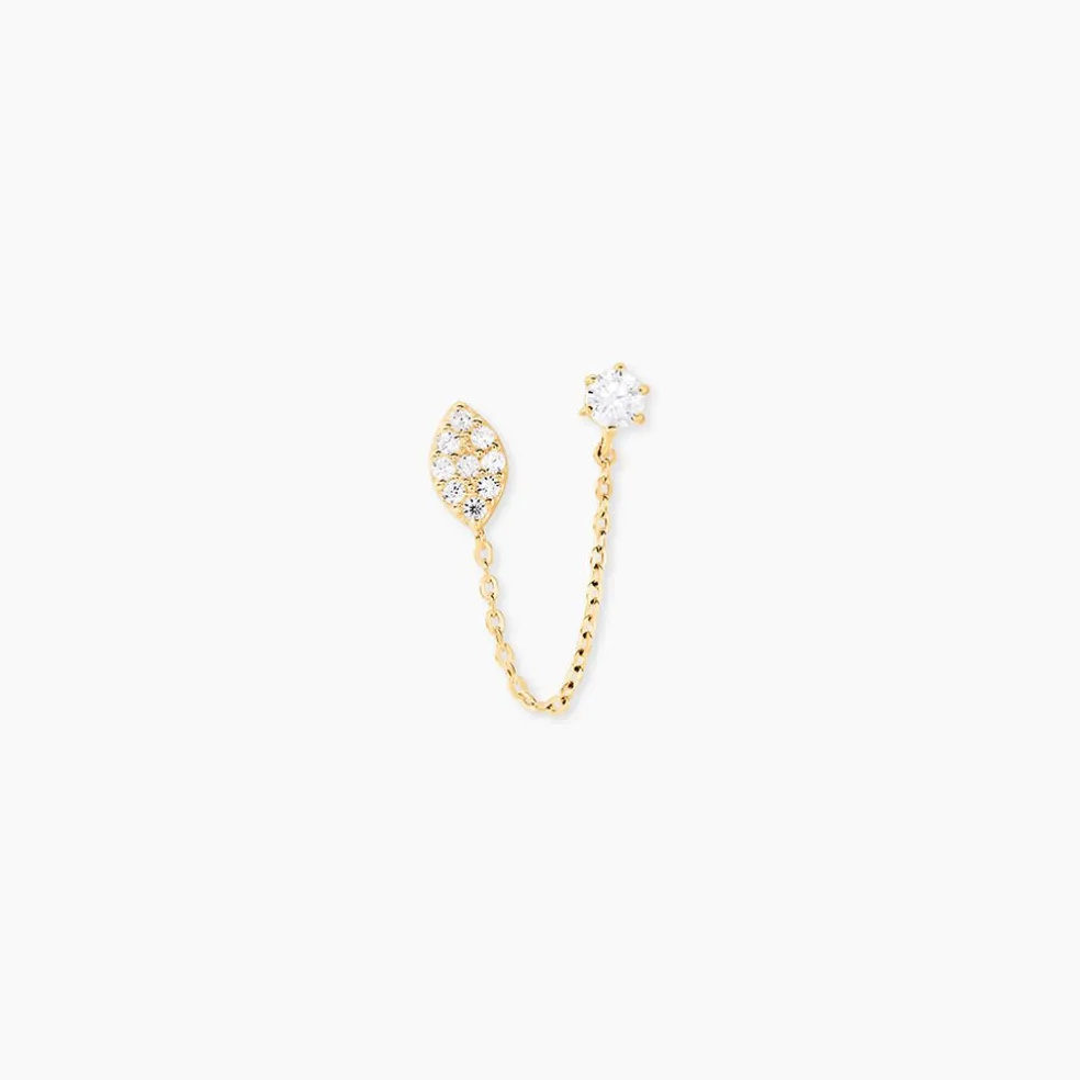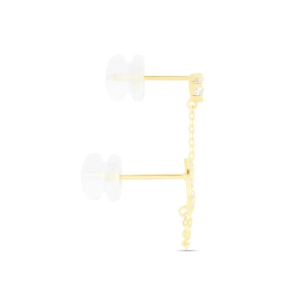 Bijou D’oreille Unitaire Pendante Or Jaune 375/1000 Oxydes De Zirconium Sertis Griffes Et Chaine Maille Forcat 3.5cm