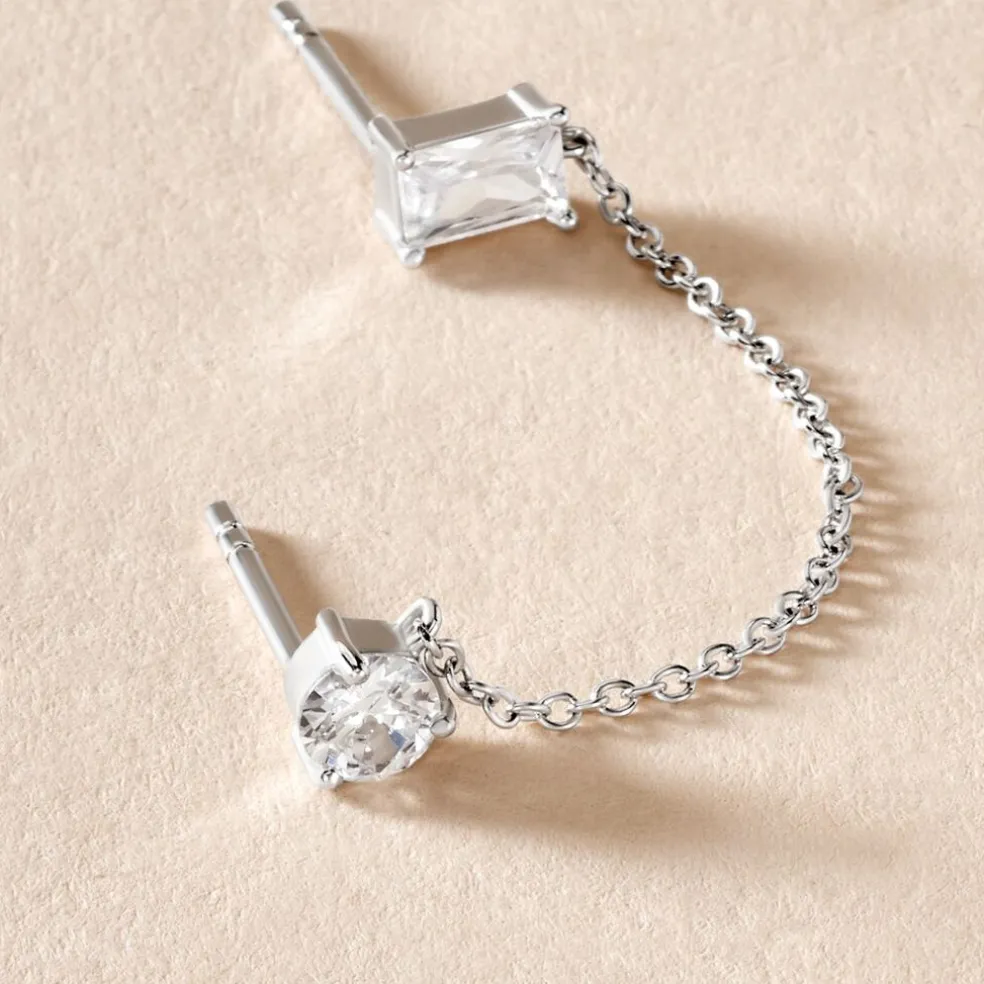 Bijou D’oreille 925/1000 Deux Trous Oxyde De Zirconium Rectangle