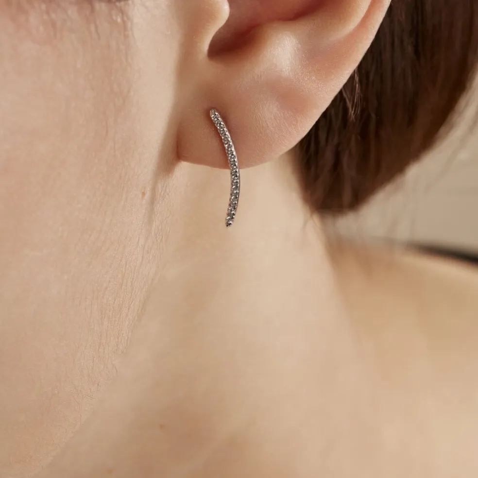 Bijoux D’oreilles Grimpantes Or Blanc 375/1000 Forme Barrettes Pavage Oxydes De Zirconium Blancs