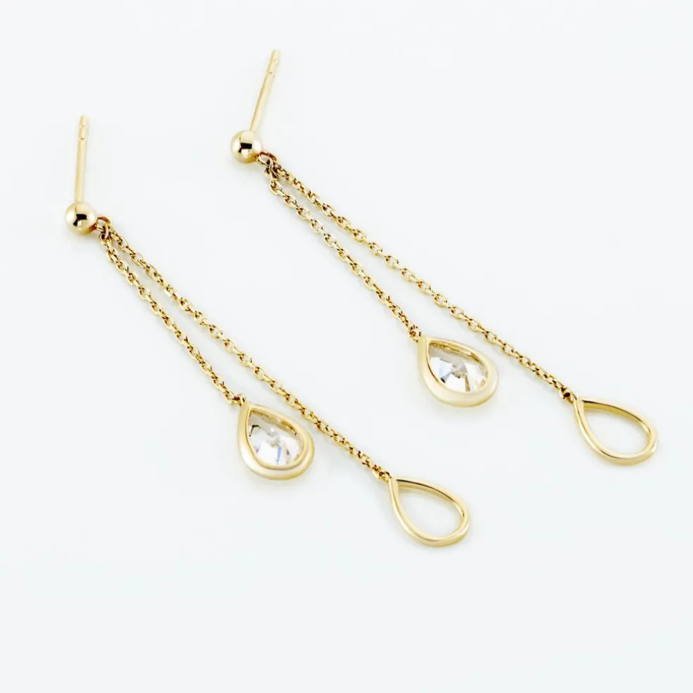 Bo Pendantes Doubles Or Jaune 375/1000 Oxyde De Zirconium Poire Serti Clos 1.36ct