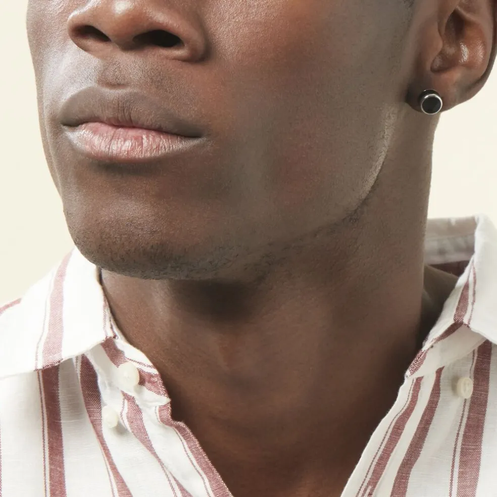 Boucle D’oreille Unitaire Argent Blanc 925/1000 Clou Rond Email Noir