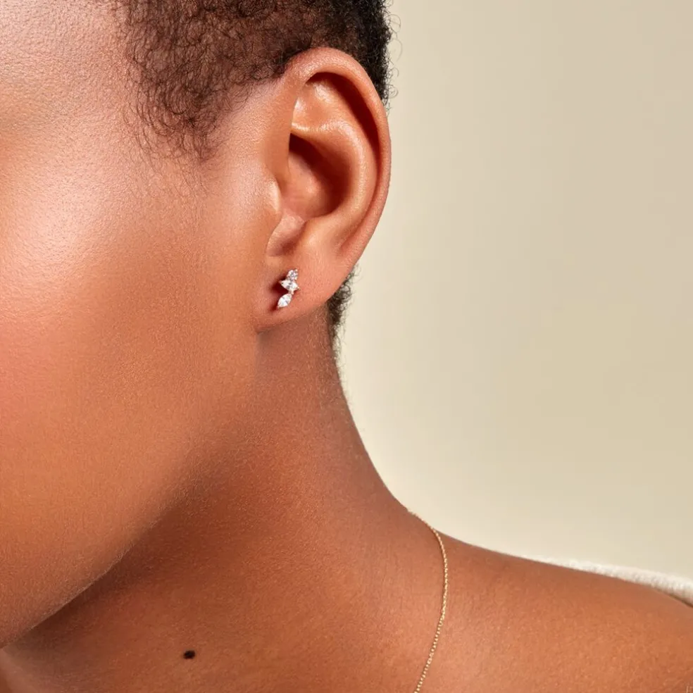 Boucles D’oreilles Déparaillées Plaqué Or Jaune Oxydes De Zirconium