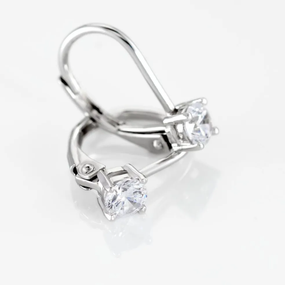 Boucles D’oreilles Dormeuses Argent Blanc 925/1000 Pampilles Oxydes De Zirconium Sertis Griffes