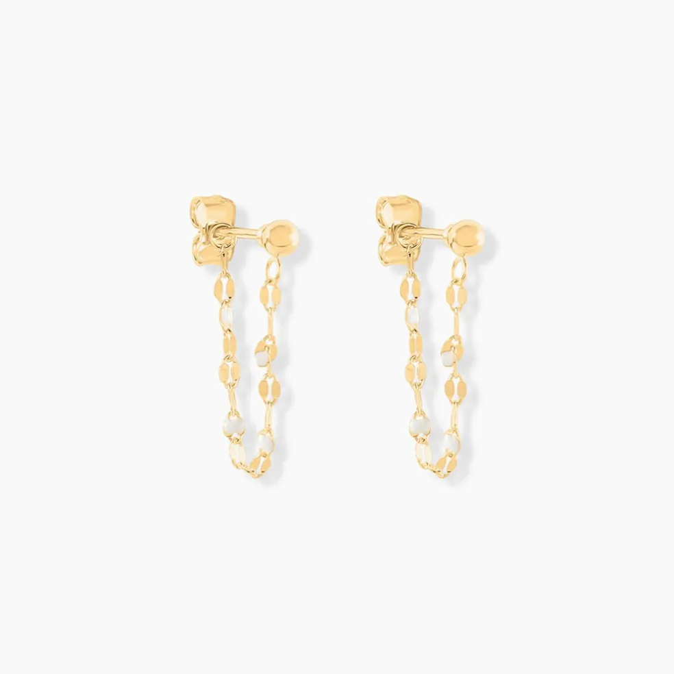 Boucles D’oreilles Pendantes Or Jaune 375/1000 Email Blanc Maille Lumina 5cm