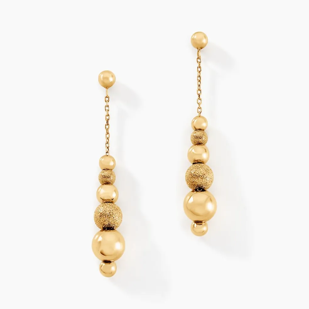 Boucles D’oreilles Pendantes Or Jaune 750/1000 Petites Et Grosses Boules Lisses Sablees Longueur 3.65cm