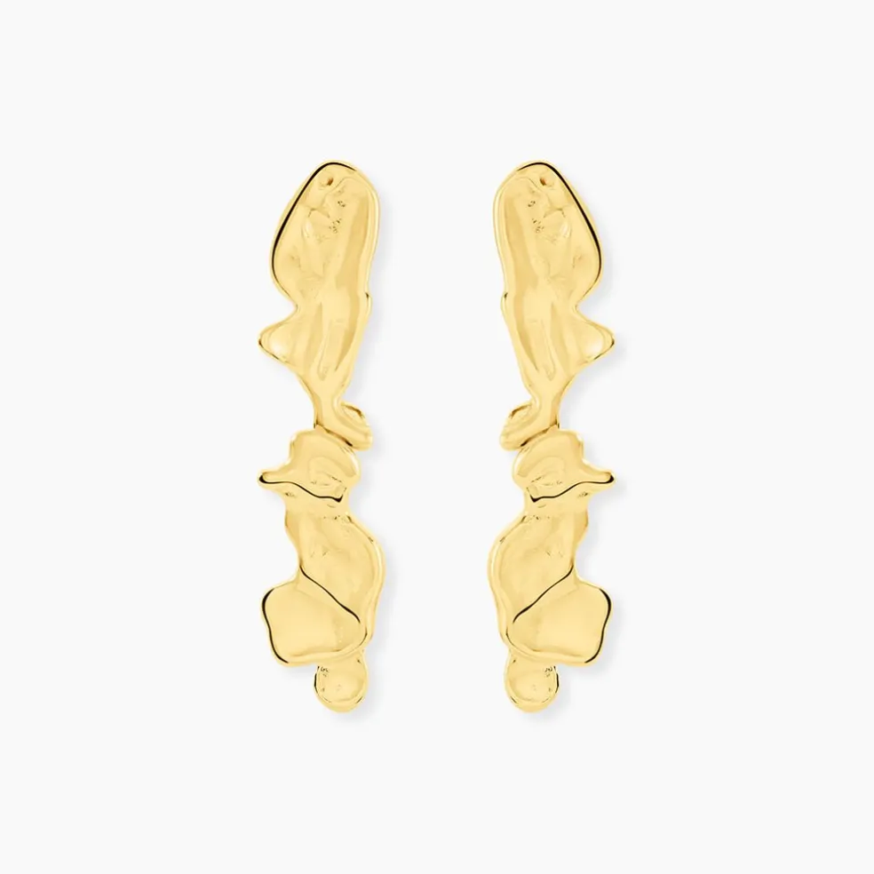 Boucles D’Oreilles Pendantes Acier Inoxydable Jaune Effet Froisse Fantaisie