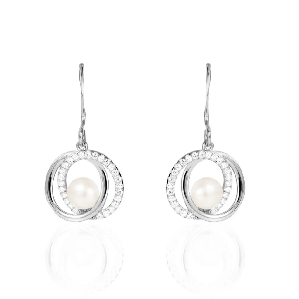 Boucles D’oreilles Argent Blanc 925/1000 Perles De Culture Nacres 5/5.5mm Oxydes De Zirconium