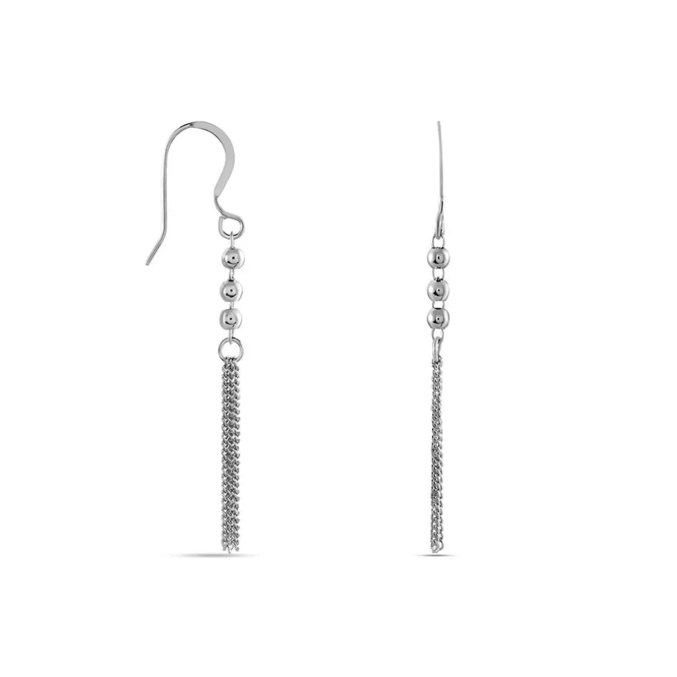 Boucles D’oreilles Pendantes Argent Blanc 925/1000 Boules Et Mailles Gourmette