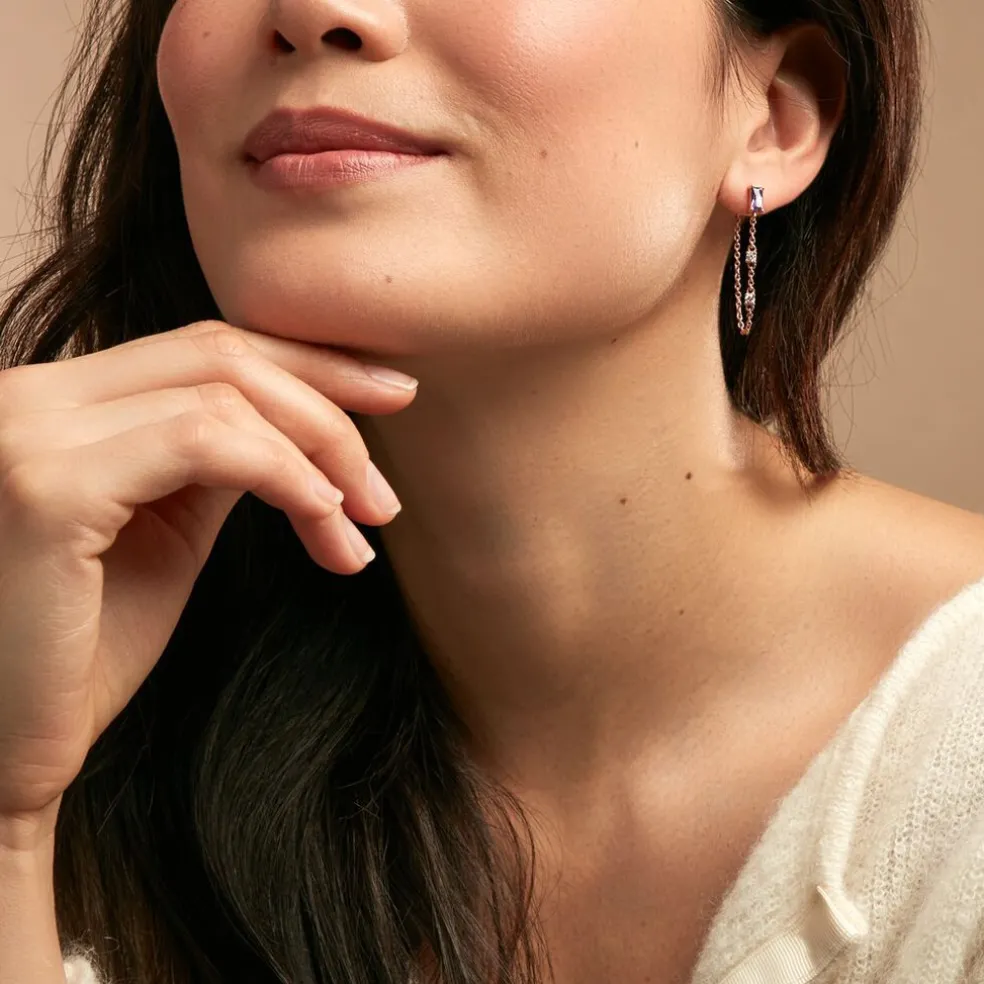 Boucles D’oreilles Pendantes Argent Rose 925/1000 Oxyde De Zirconium