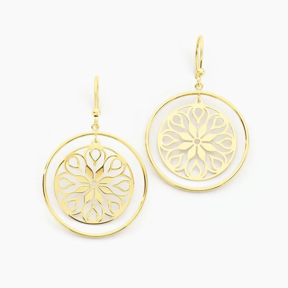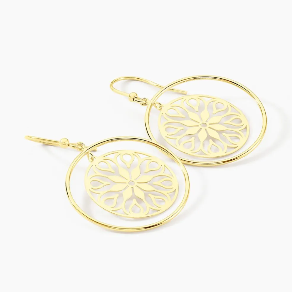 Boucles D’oreilles Or Jaune 375/1000 Motif Rosace Ajoure