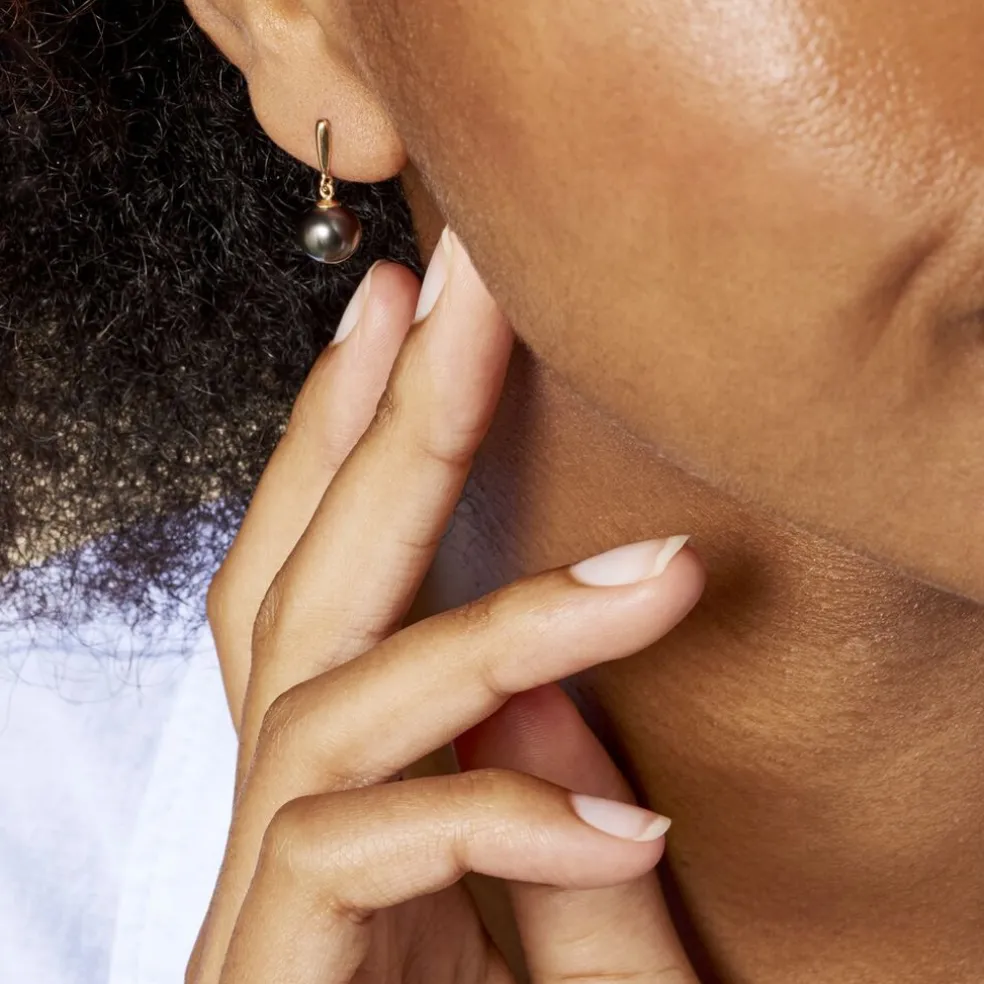 Boucles D’oreilles Or Jaune 375/1000 Perle De Culture Mer Du Sud Tahiti 8/9mm Semi-baroque