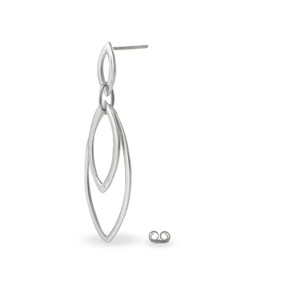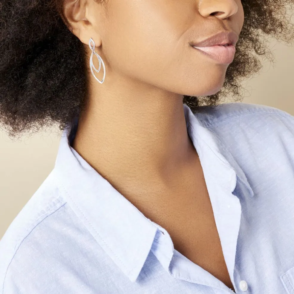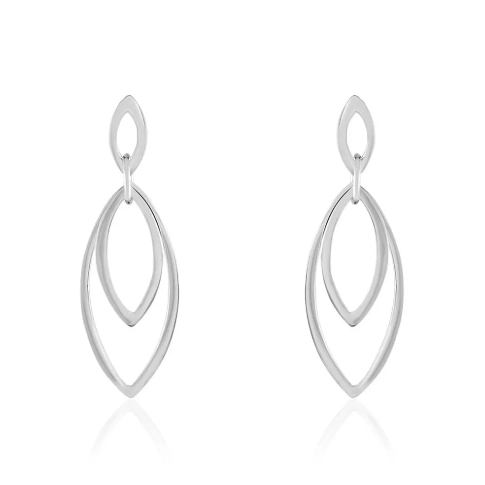Boucles D’oreilles Pendantes Argent Blanc 925/1000 Ovales Ajoures