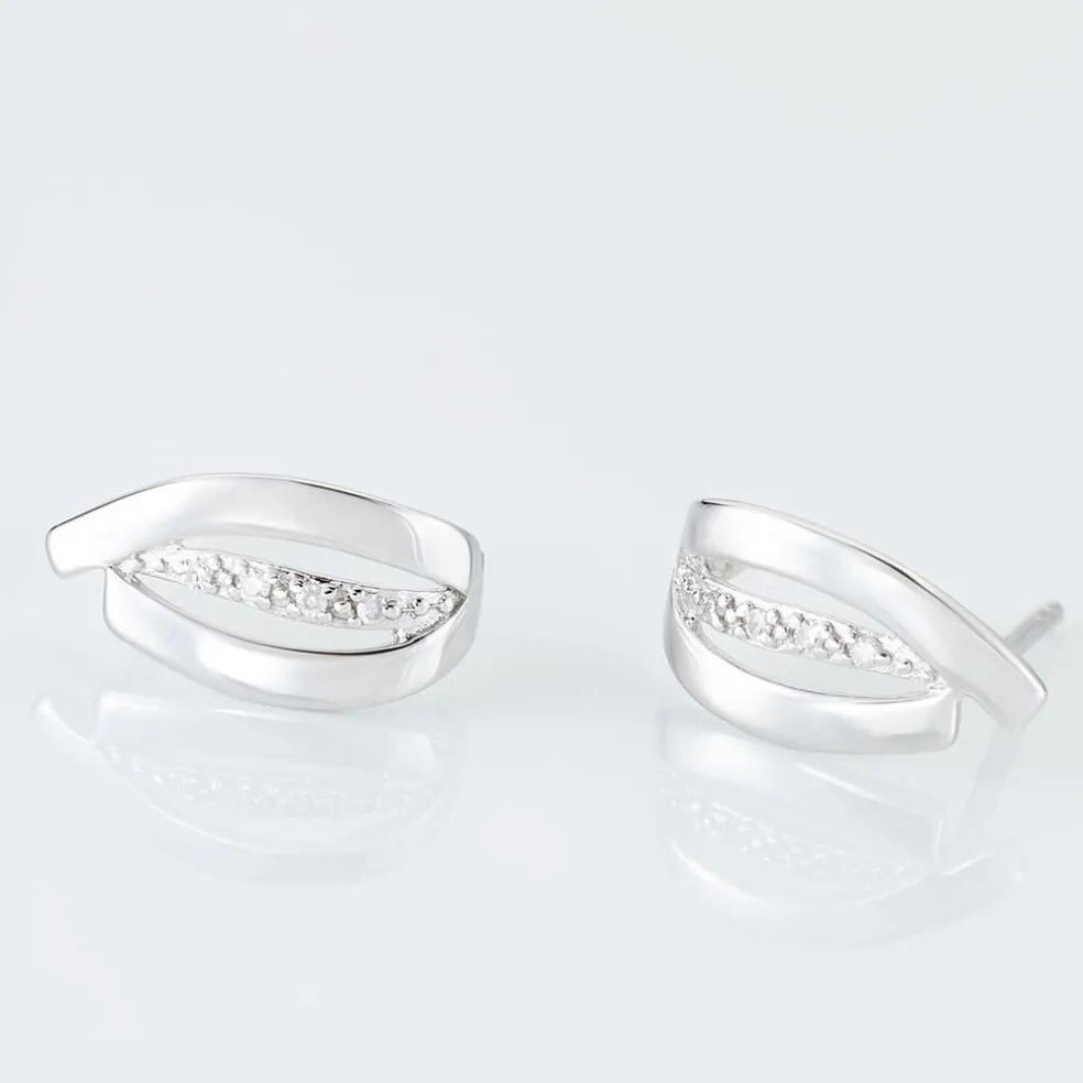 Boucles D’oreilles Or Blanc 375/1000 Gouttes Lignes Pavage Diamants