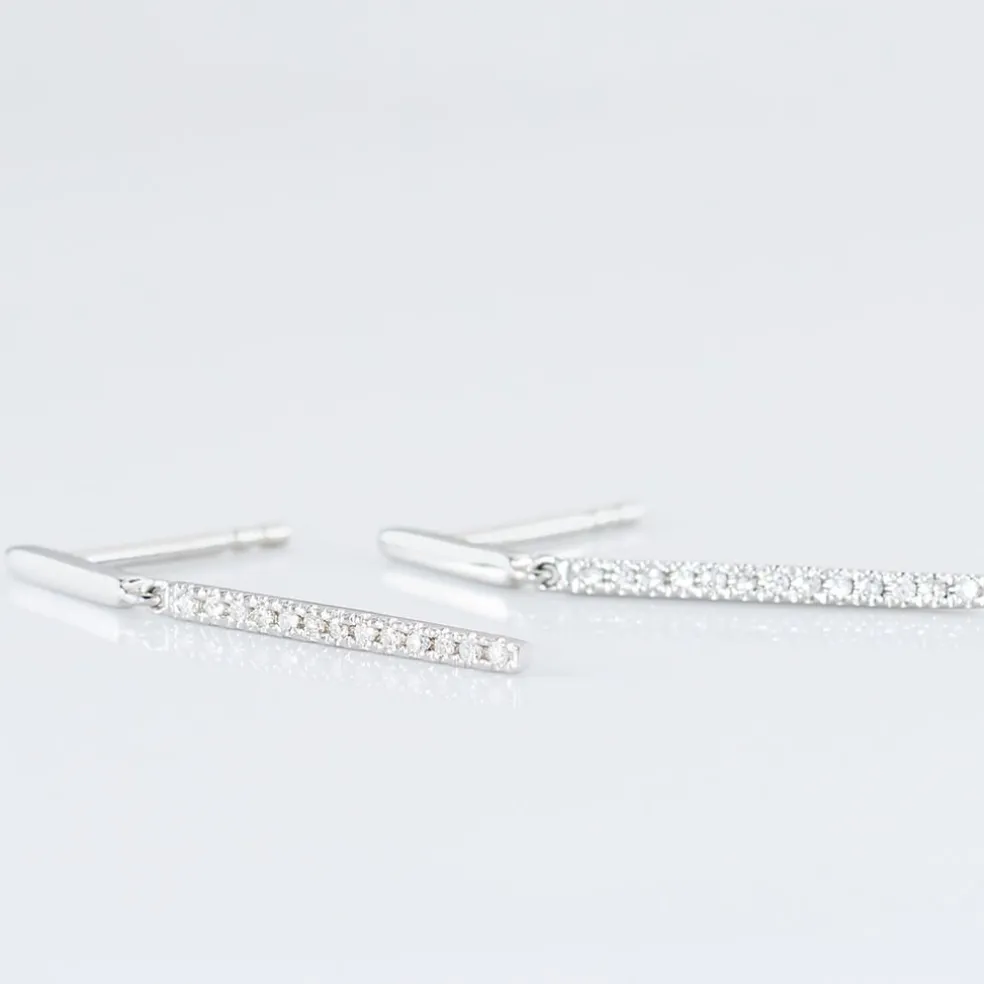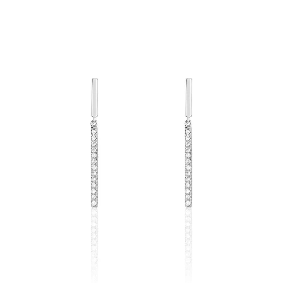 Boucles D’oreilles Or Blanc 375/1000 Barrette Pavage Diamants