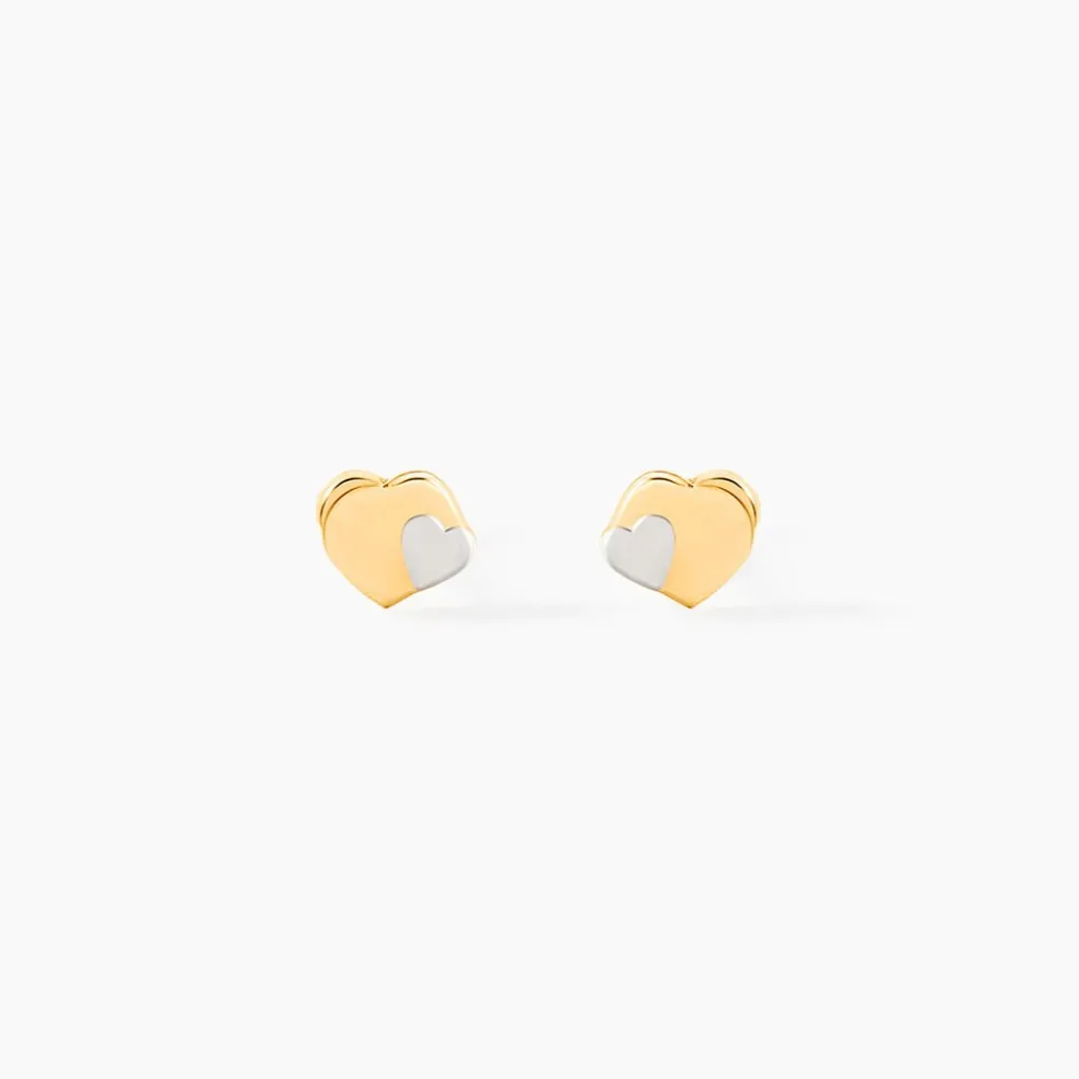 Boucles D’oreilles Or Bicolore 375/1000 Puces Formes Doubles C艙urs