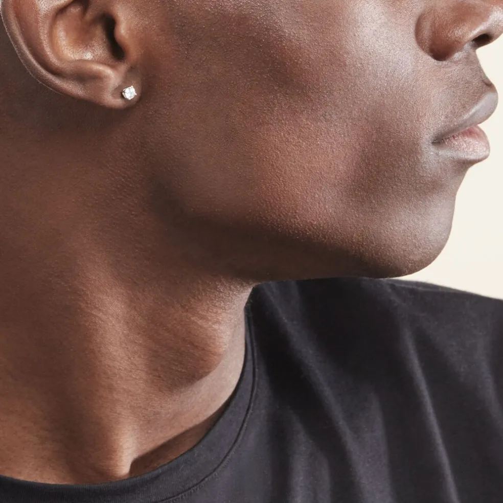 Boucles D’oreilles Or Blanc 375/1000 Puces Diamants 0.50cts Sertis 4 Griffes