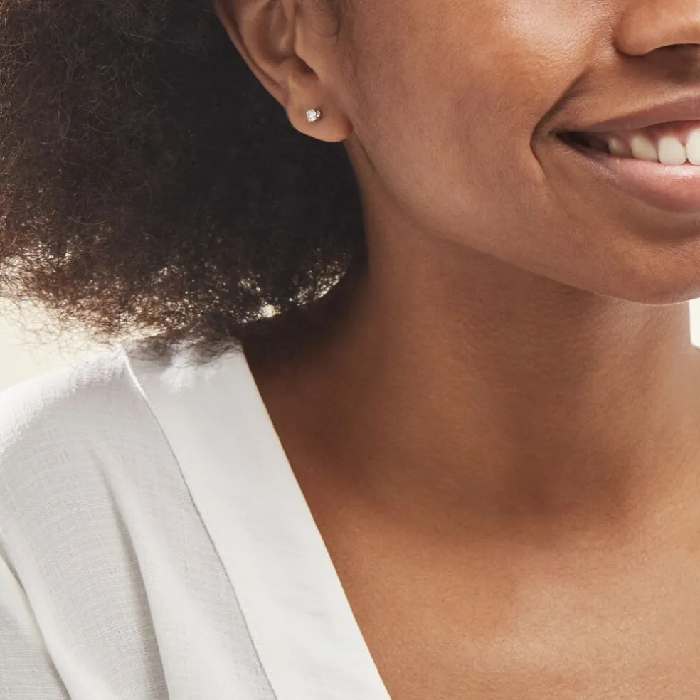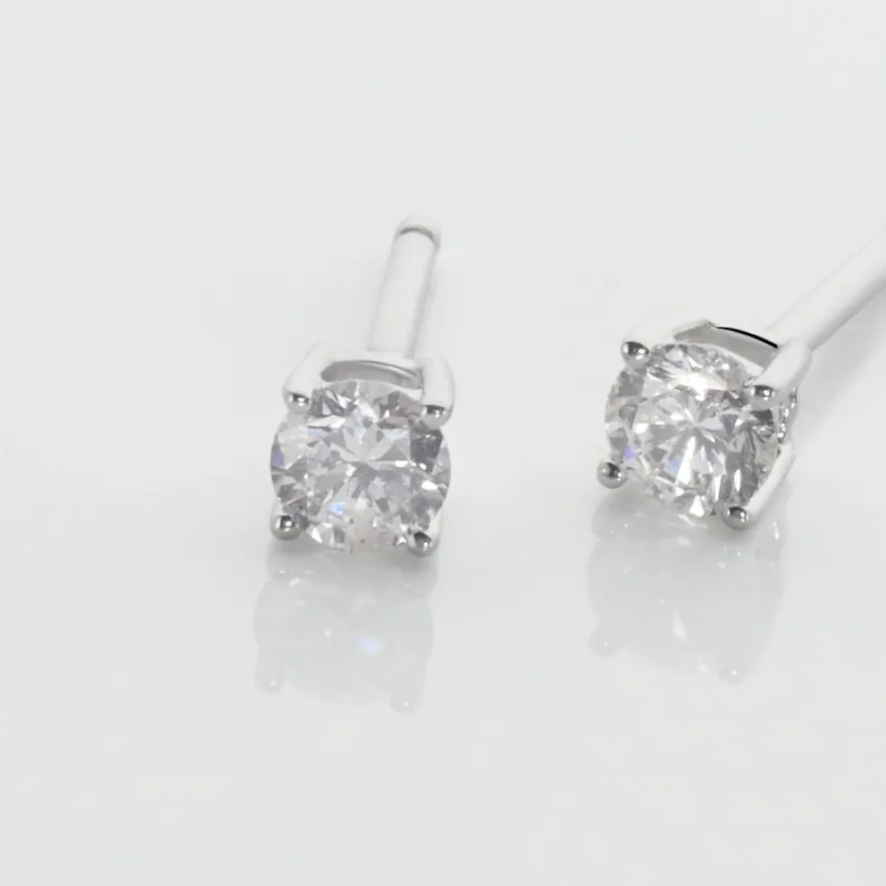 Boucles D’oreilles Or Blanc 375/1000 Puces Diamants 0.30cts Sertis 4 Griffes