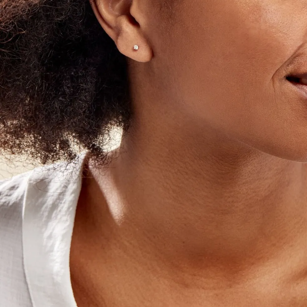 Boucles D’oreilles Or Jaune 375/1000 Puces Diamants 0.10cts Serti 4 Griffes