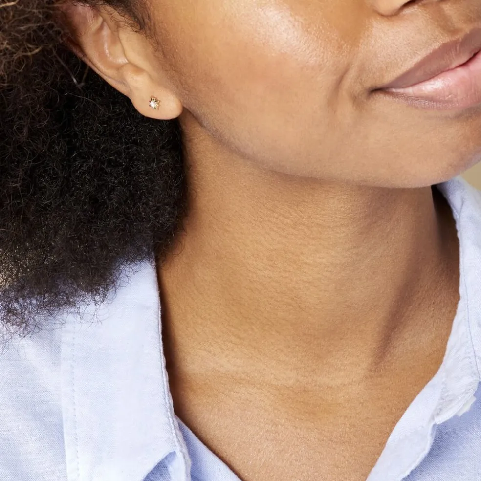 Boucles D’oreilles Or Jaune 375/1000 Puces Motifs Etoiles Oxydes De Zirconium Centraux
