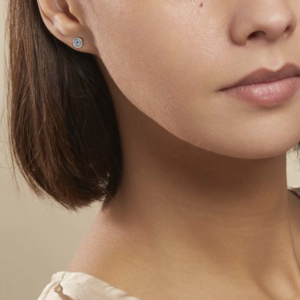 Boucles D’oreilles Puces Argent Blanc 925/1000 Pavages Oxydes De Zirconium Bleus