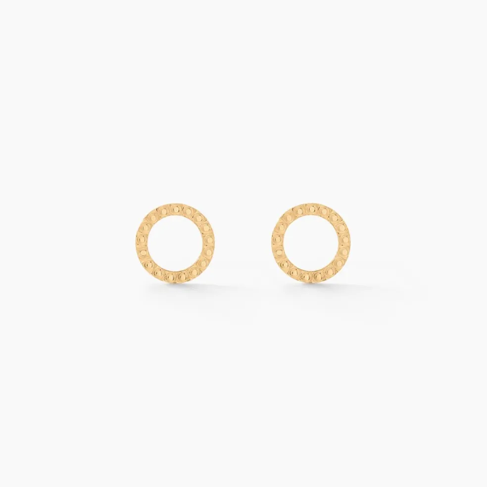 Boucles D’oreilles Puces Or Jaune 375/1000 Cercles Ajoures Effet Cisele