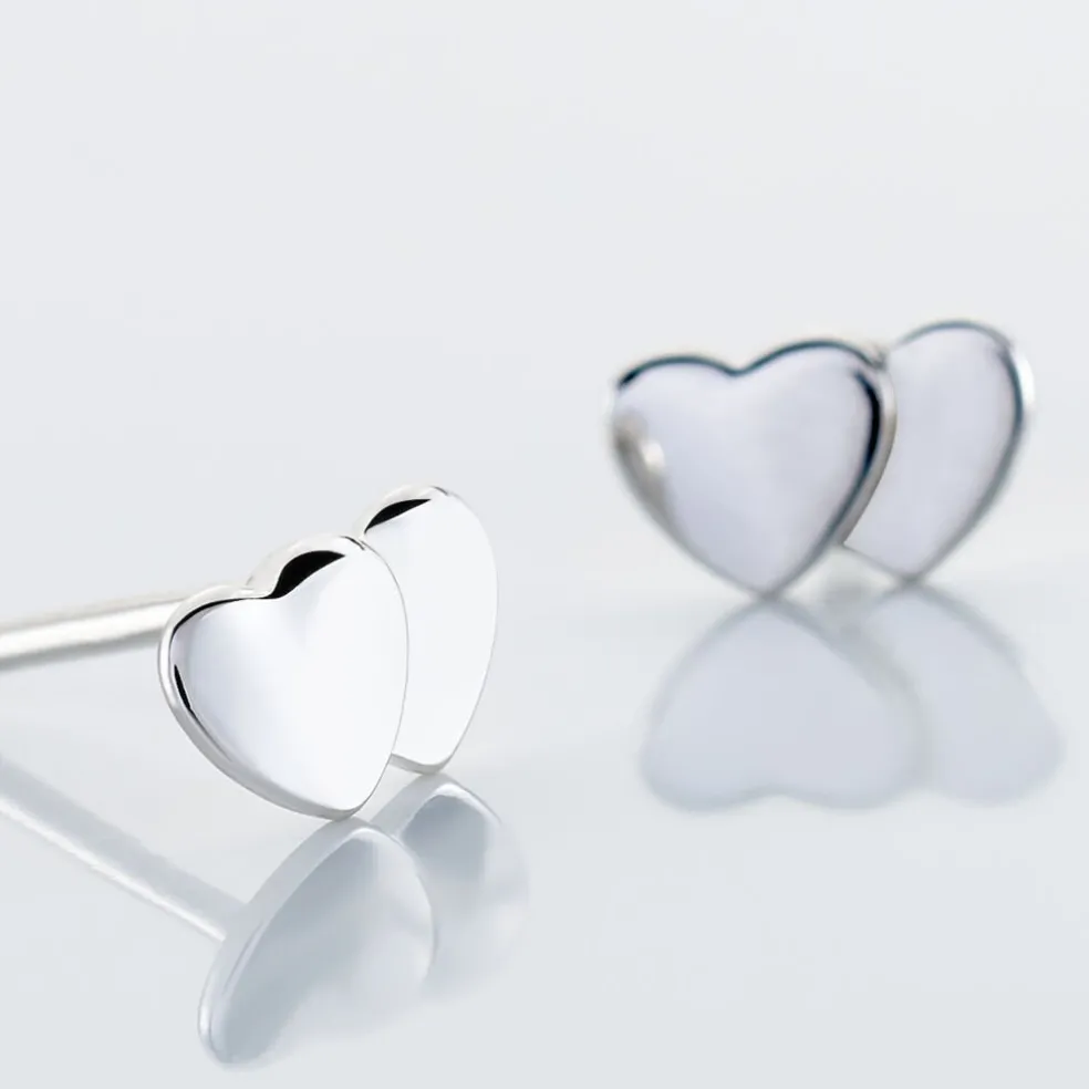 Boucles D’oreilles Puces Argent Blanc 925/1000 Double C艙urs