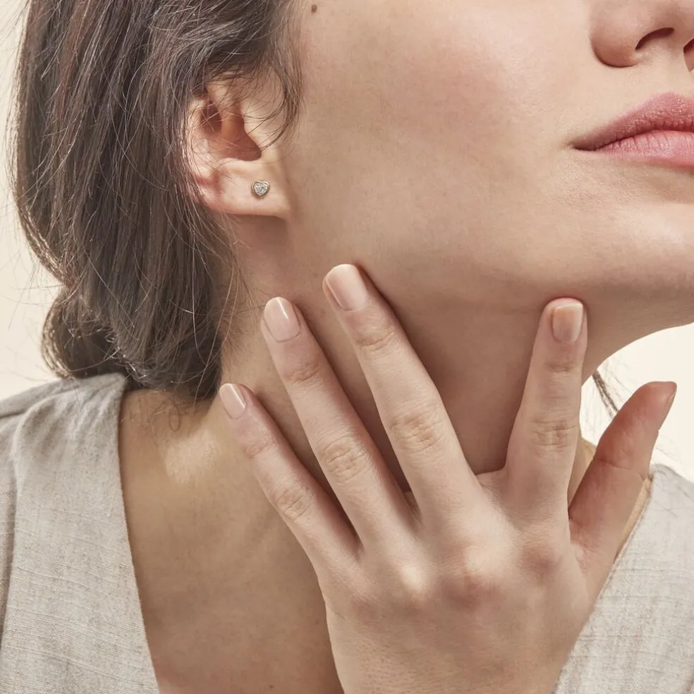 Boucles D’oreilles Or Jaune 375/1000 Puces C艙urs Strass