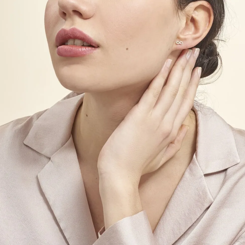 Boucles D’oreilles Puces Or Jaune 375/1000 Formes Infinis Oxydes De Zirconium