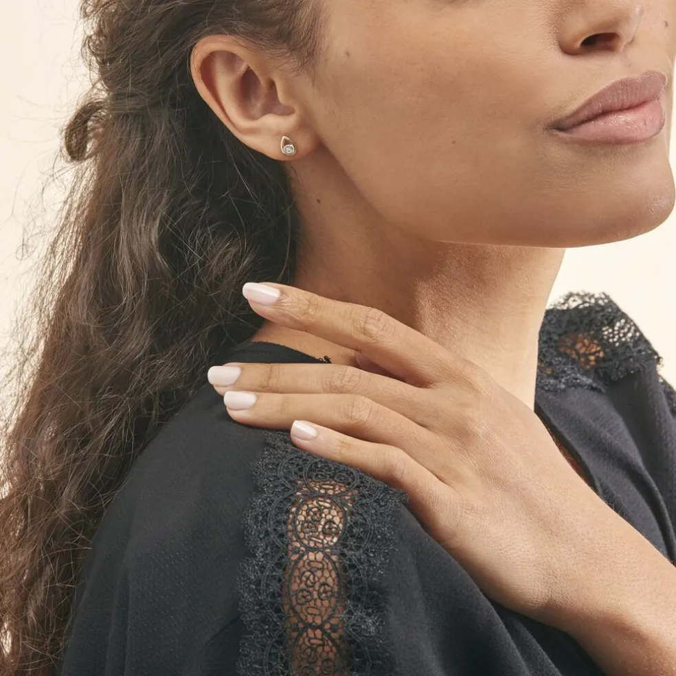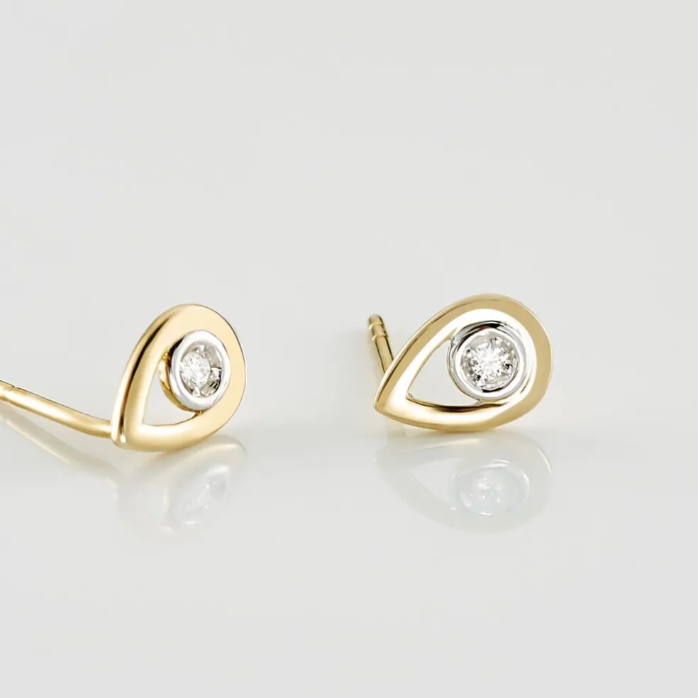 Boucles D’oreilles Or Jaune 375/1000 Puces Motifs Gouttes Ajoures Diamants Centraux 0.038ct