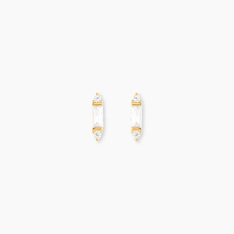 Bo Puces Or Jaune 375/1000 Oxyde De Zirconium Blanc Serti 2 Griffes