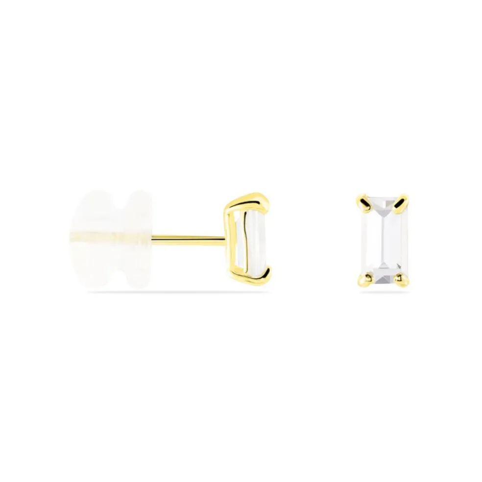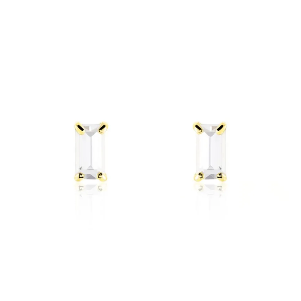 Boucles D’oreilles Puces Or Jaune 375/1000 Rectangles Serti Griffes Oxydes De Zirconium 3x5mm