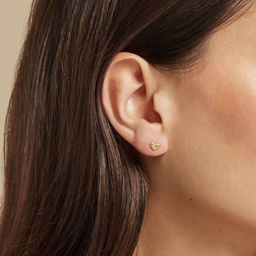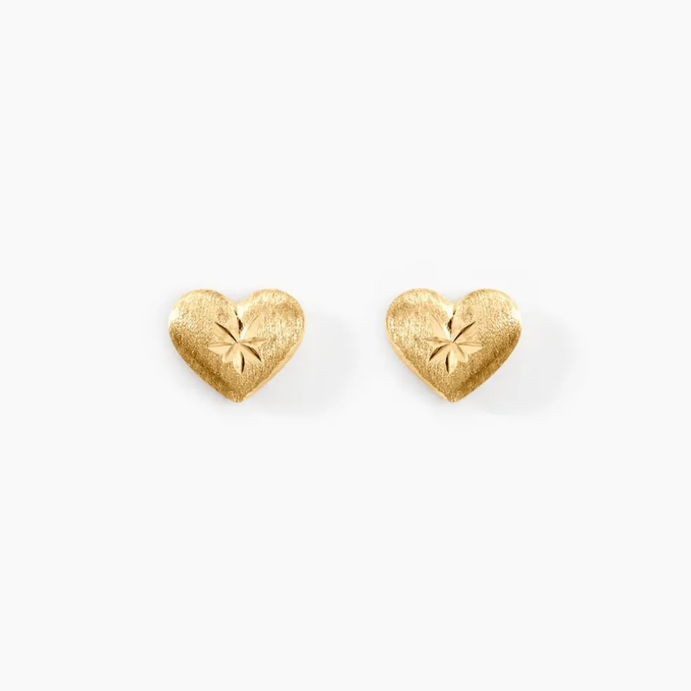 Boucles D’oreilles Puces Or Jaune 375/1000 Coeurs Incrustes Etoiles