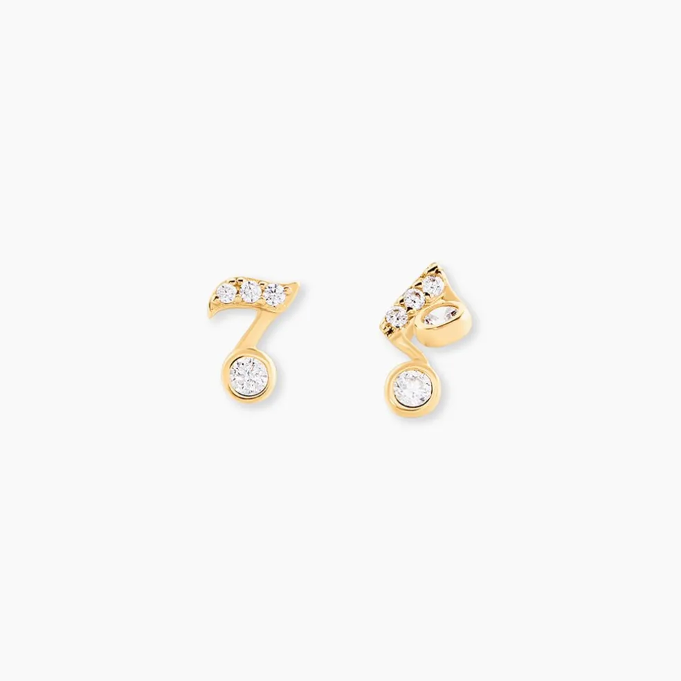 Bo Puces Or Jaune 375/1000 Note De Musique Oxyde De Zirconium Blanc Serti Clos