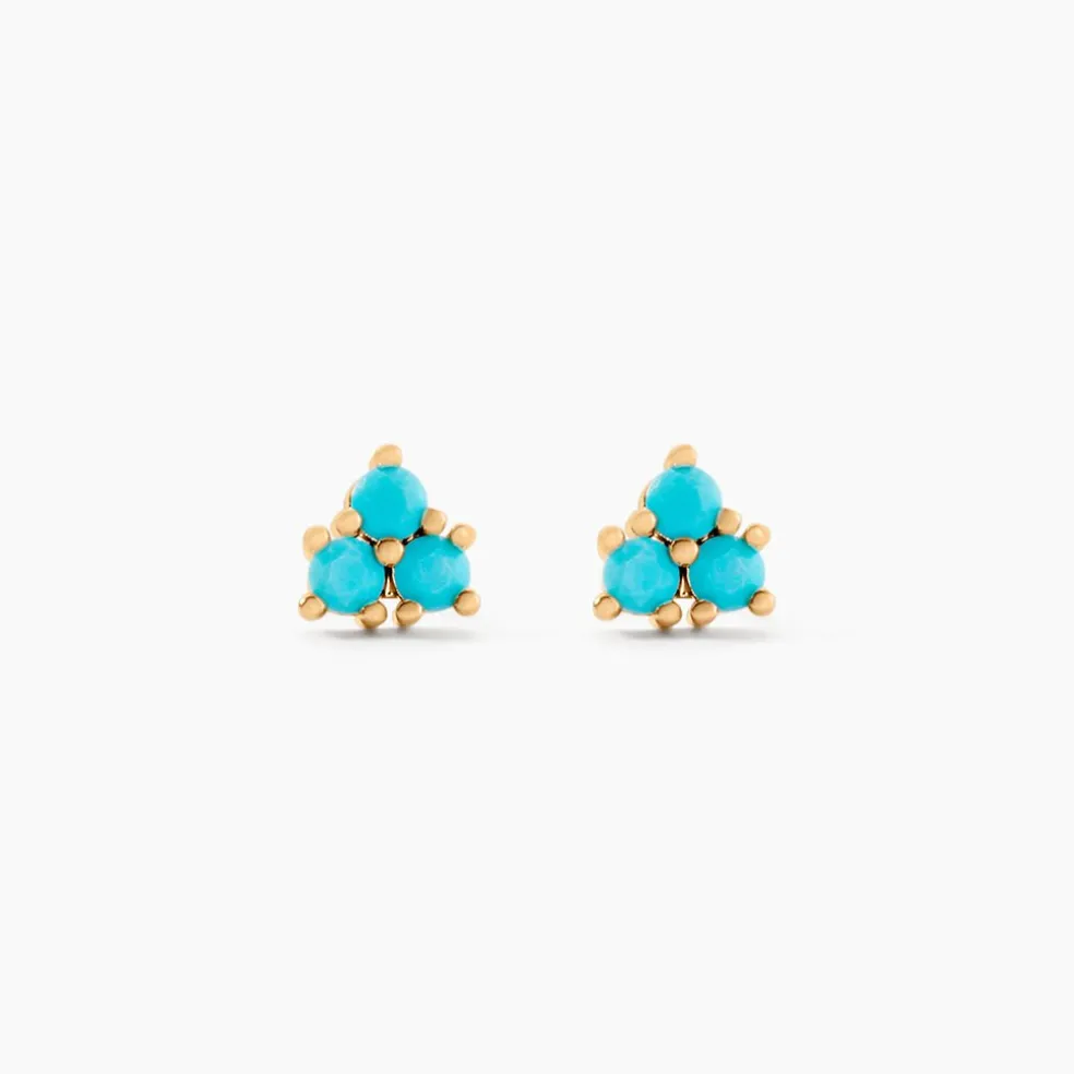 Boucles D’oreilles Puces Plaqué Or Jaune Trio Pierres De Synthese Turquoise