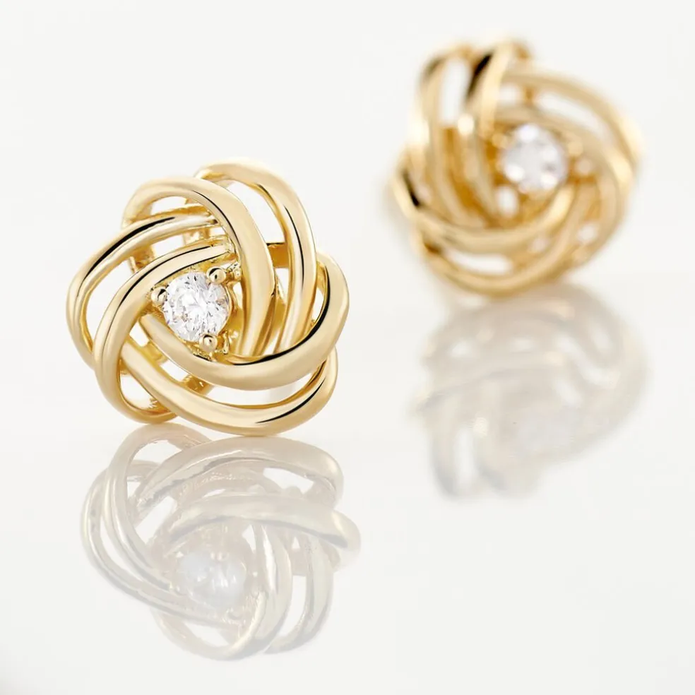 Boucles D’oreilles Puces Plaqué Or Jaune Nids Oxydes De Zirconium