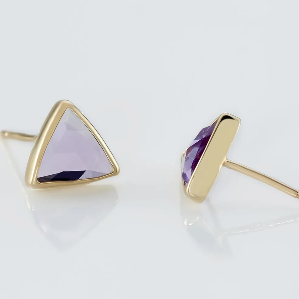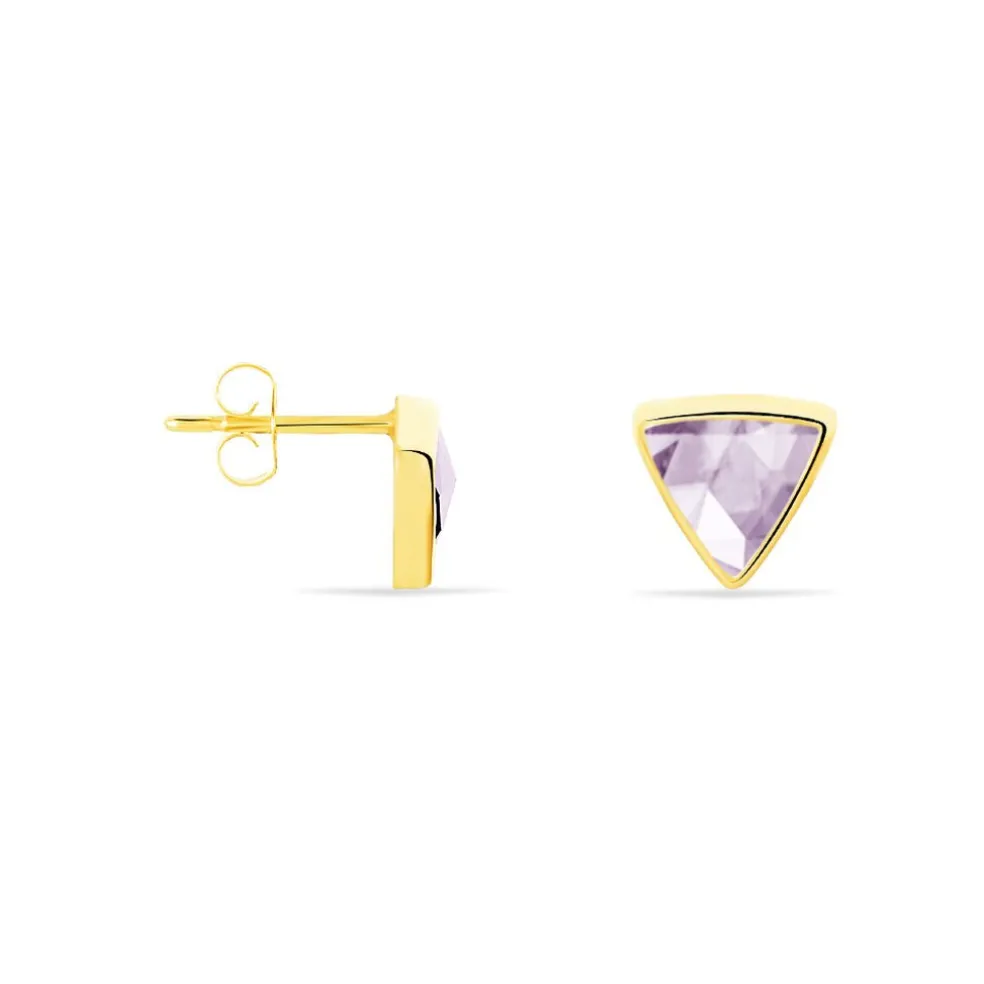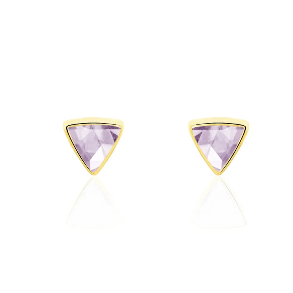 Boucles D’oreilles Or Jaune 375/1000 Puces Améthystes Formes Triangles Sertis Clos