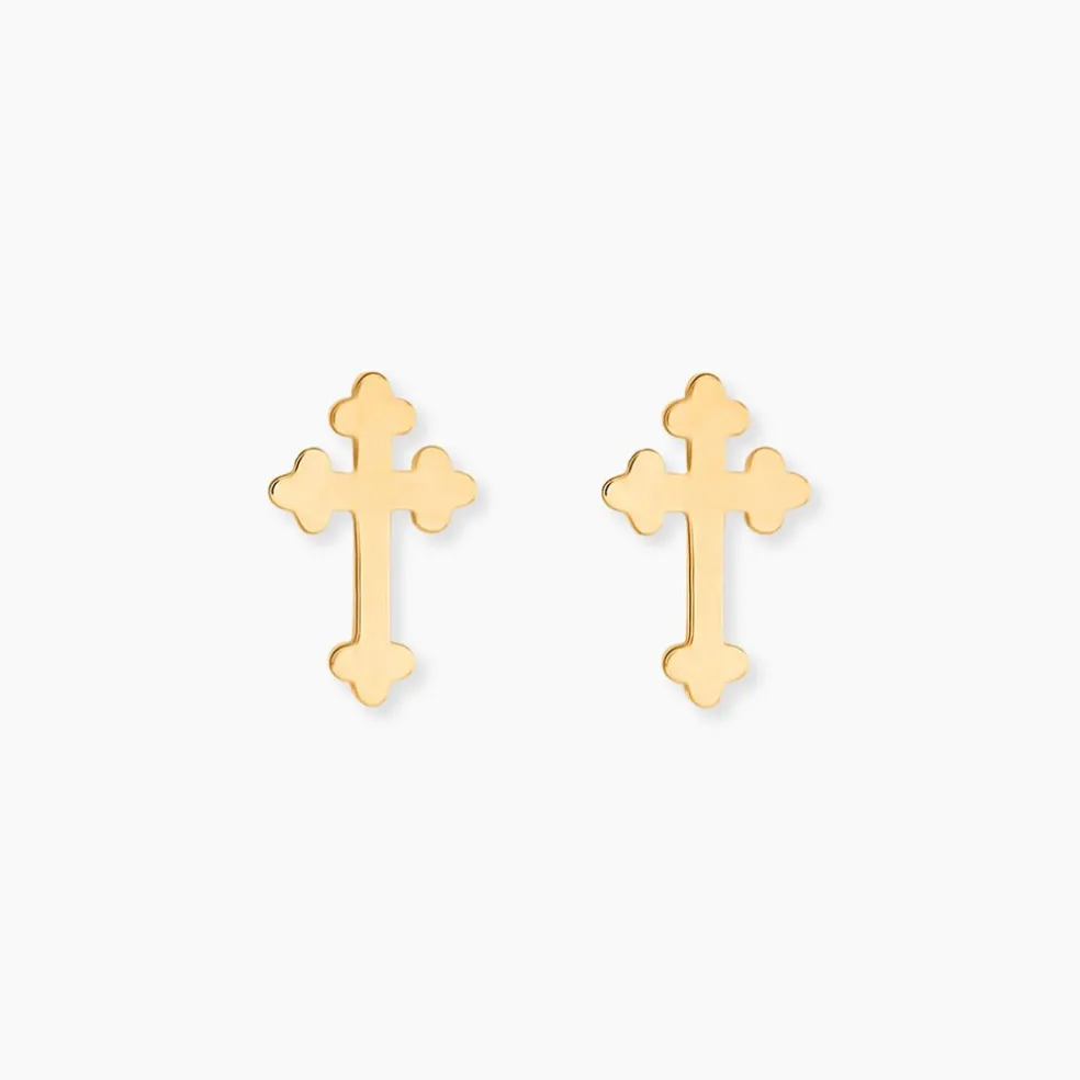 Bo Puces Or Jaune 375/1000 Croix