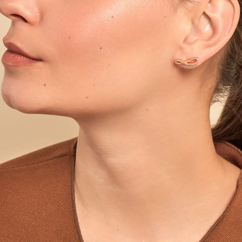 Boucles D’oreilles Puces Plaqué Or Jaune Infini Pavage Oxydes De Zirconium