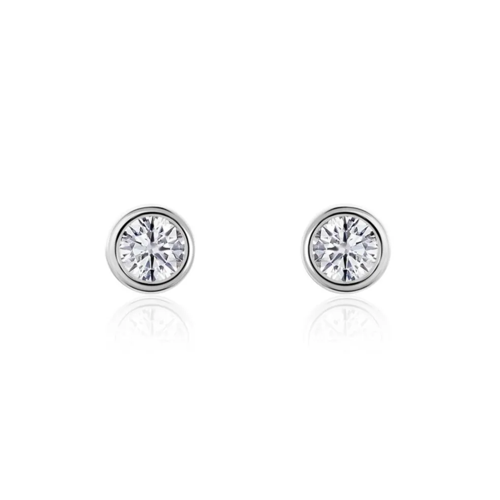 Boucles D’oreilles Puces Or Blanc 375/1000 Diamants Sertis Clos 0.10 Cts