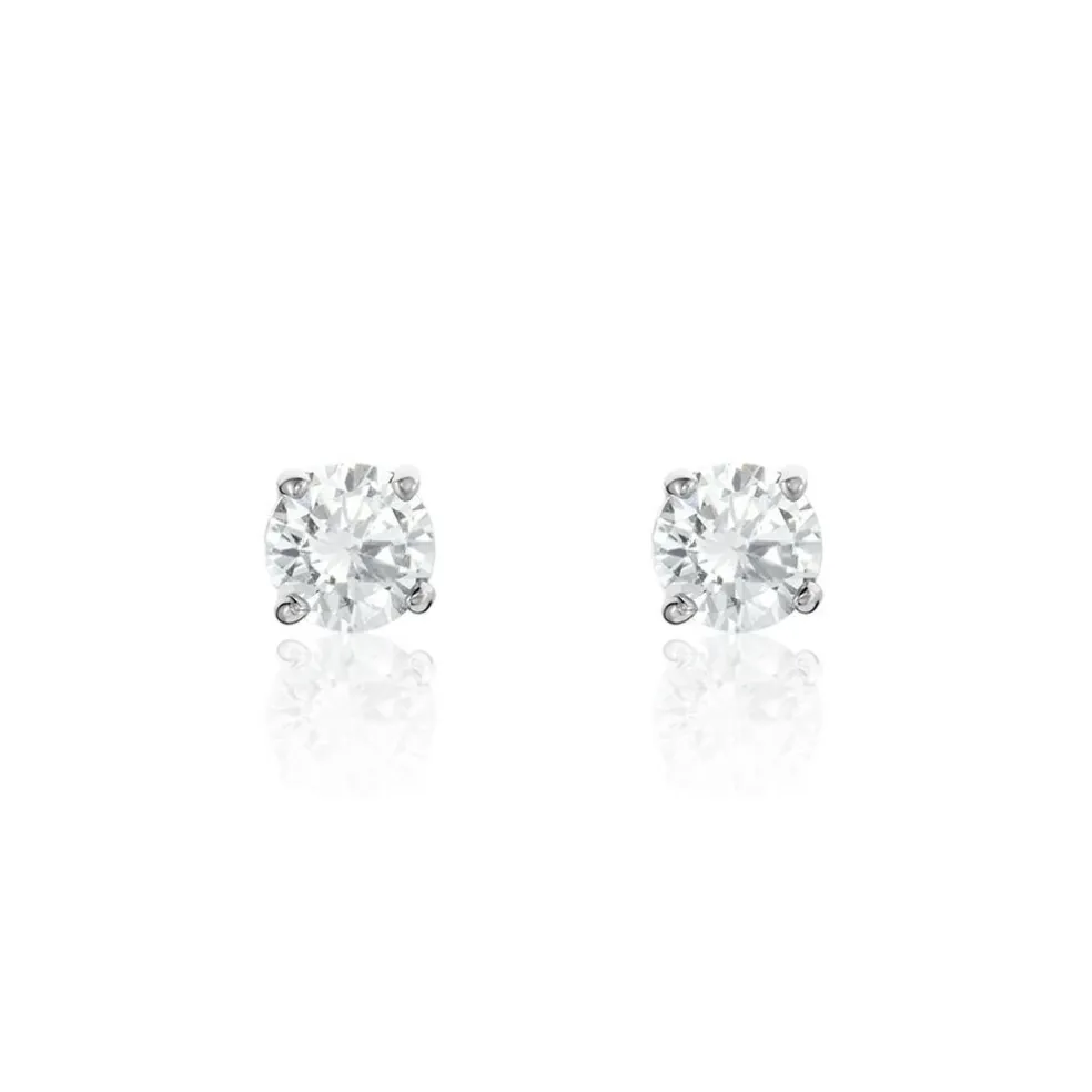 Boucles D’oreilles Puces Or Blanc 375/1000 Oxyde De Zirconium Serti 4 Griffes 5mm