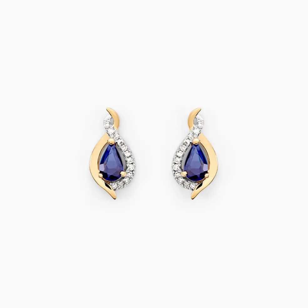 Boucles D’oreilles Puces Or Jaune 375/1000 Saphir Poire Serti Griffes 0.46ct