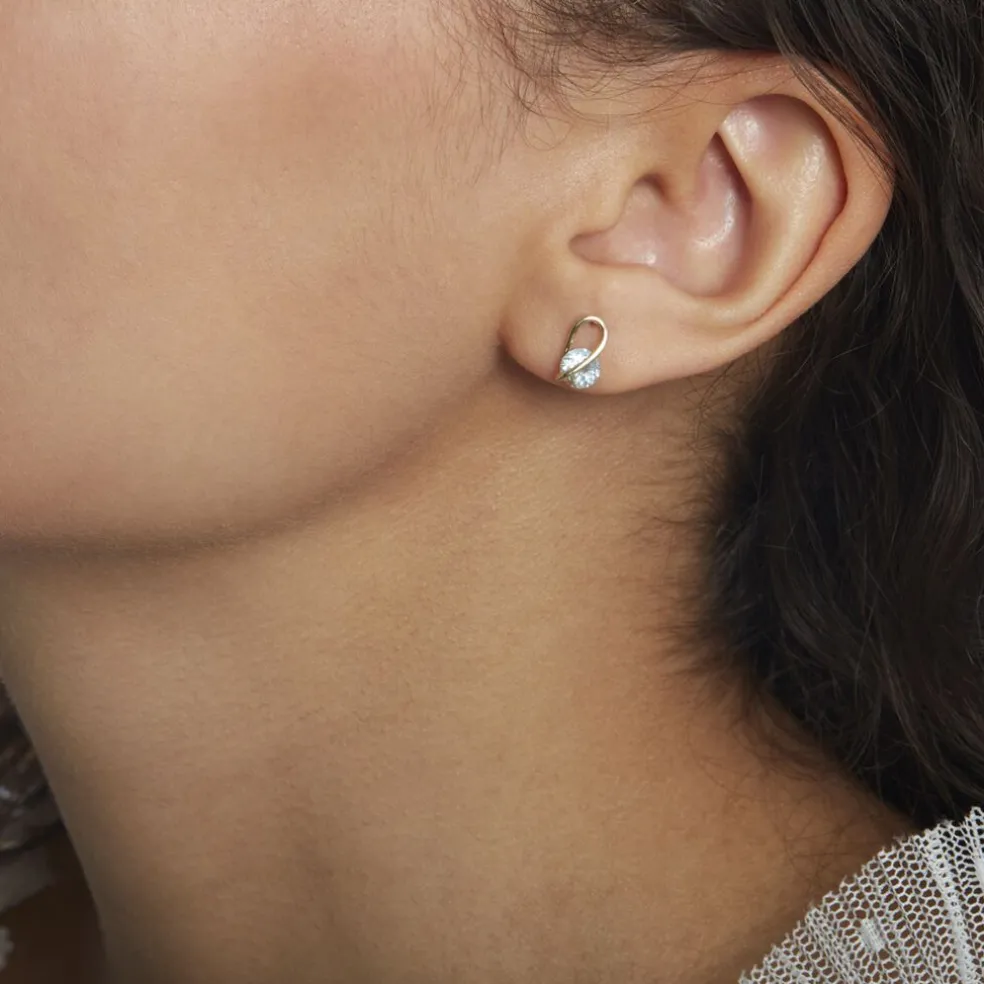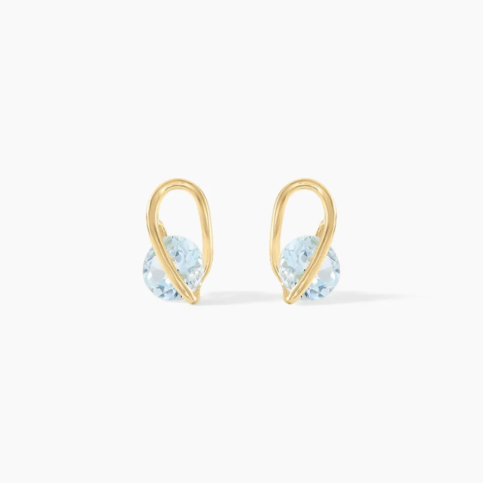 Boucles D’oreilles Puces Or Jaune 375/1000 Forme Vague Topazes Rondes 0.5cts