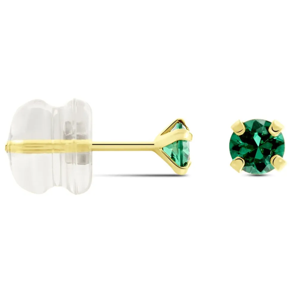 Boucles D’oreilles Puces Or Jaune 375/1000 Oxyde De Zirconium Vert 3mm