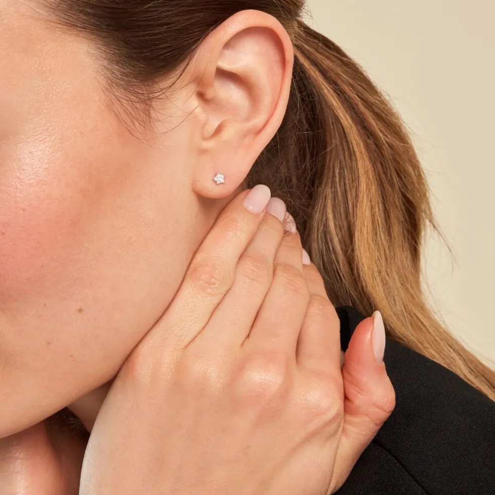 Boucles D’oreilles Puces Argent Blanc 925/1000 étoiles Pavage Oxydes De Zirconium