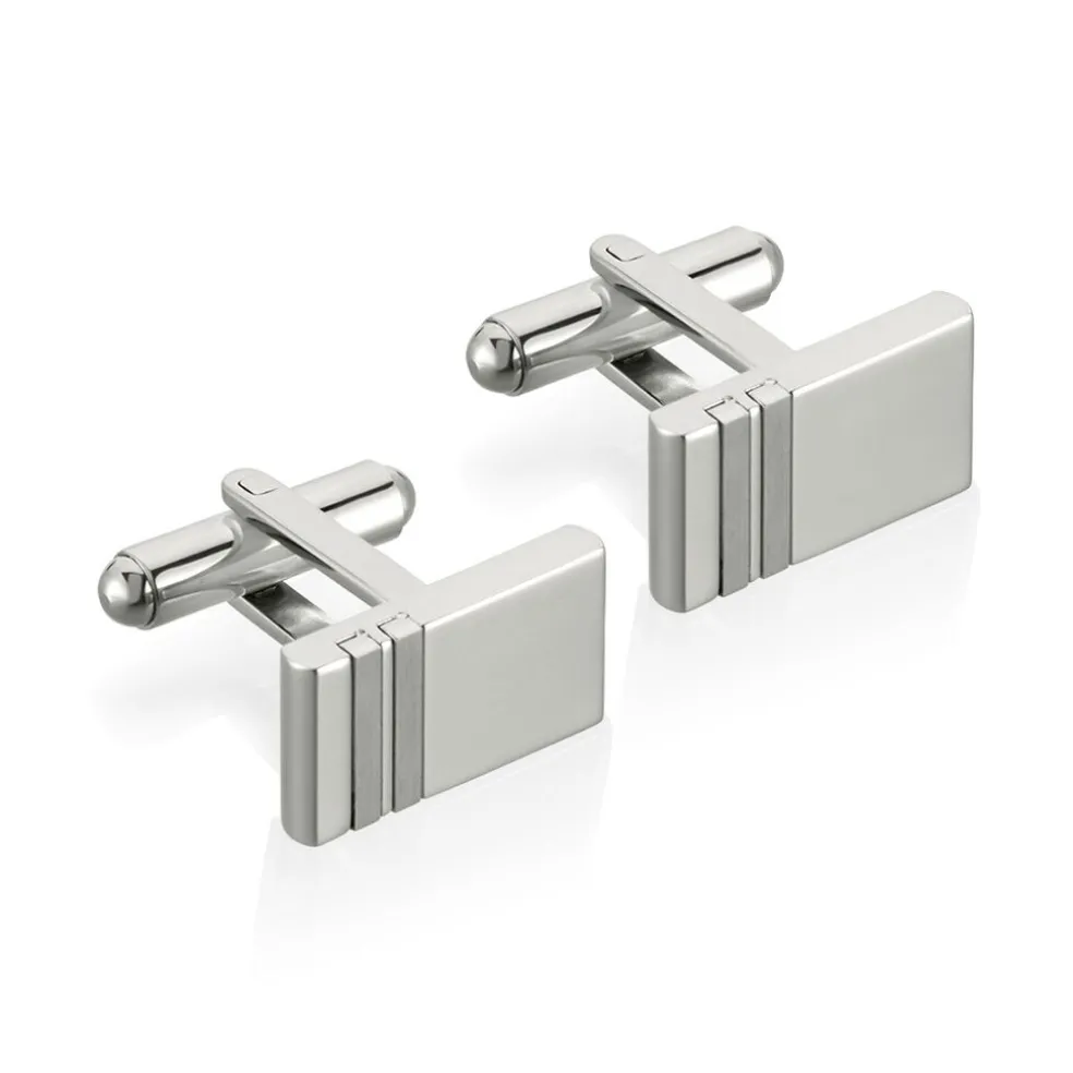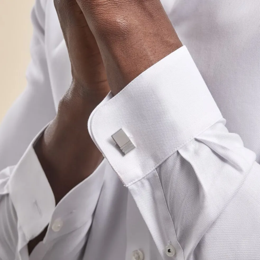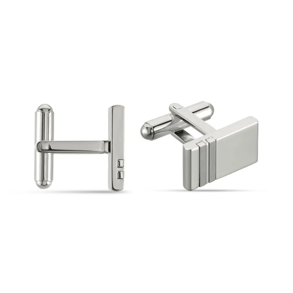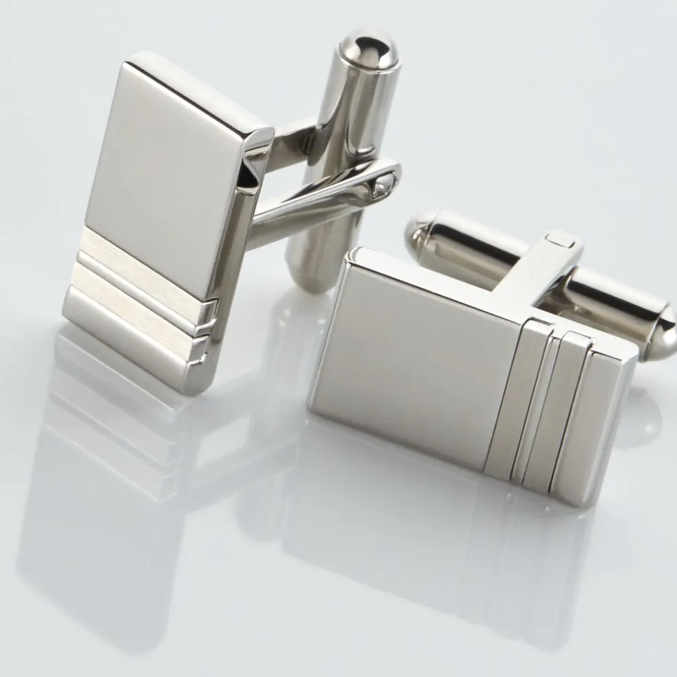 Boutons De Manchette Acier Blanc Rectangles Double Coche