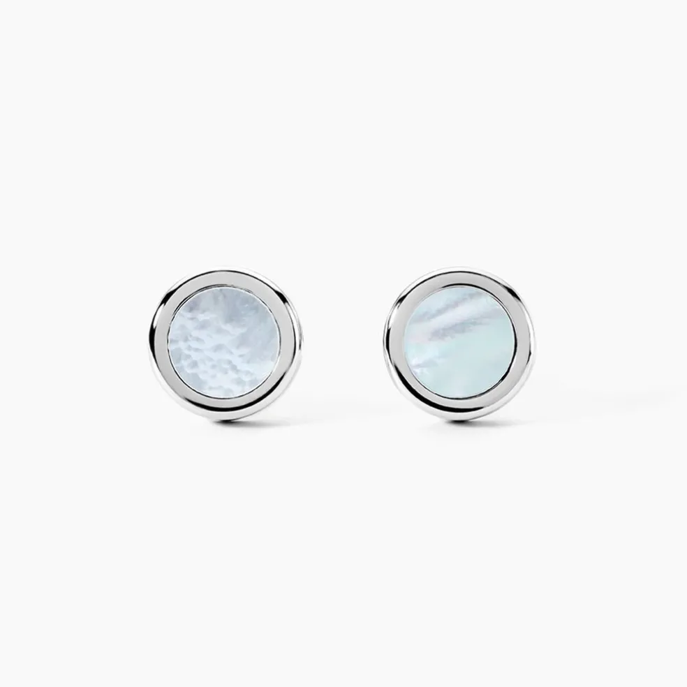 Boutons De Manchette Jourdan Athos Acier Argente Nacre Blanche Jh150178c